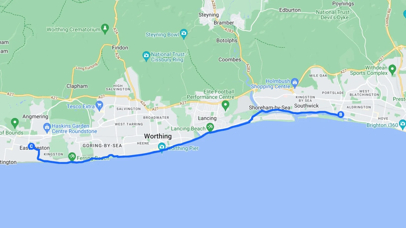A there-and-back-and-there-and-back-again route riding along 90km of the south coast[ish].