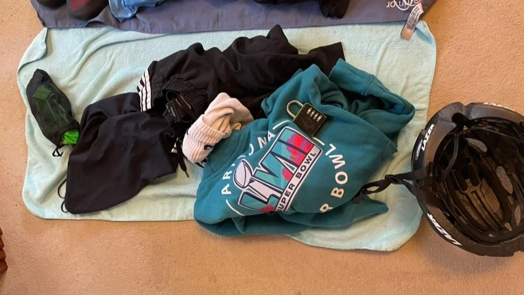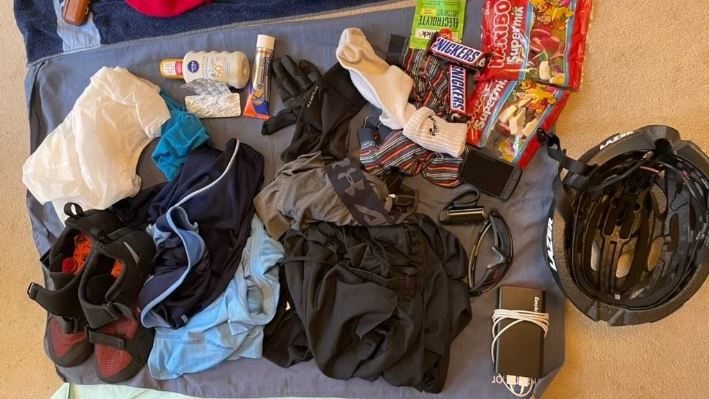 Bike kit, essentials although the suncream ended up being a little optimistic.