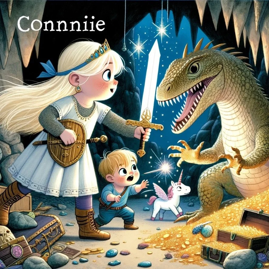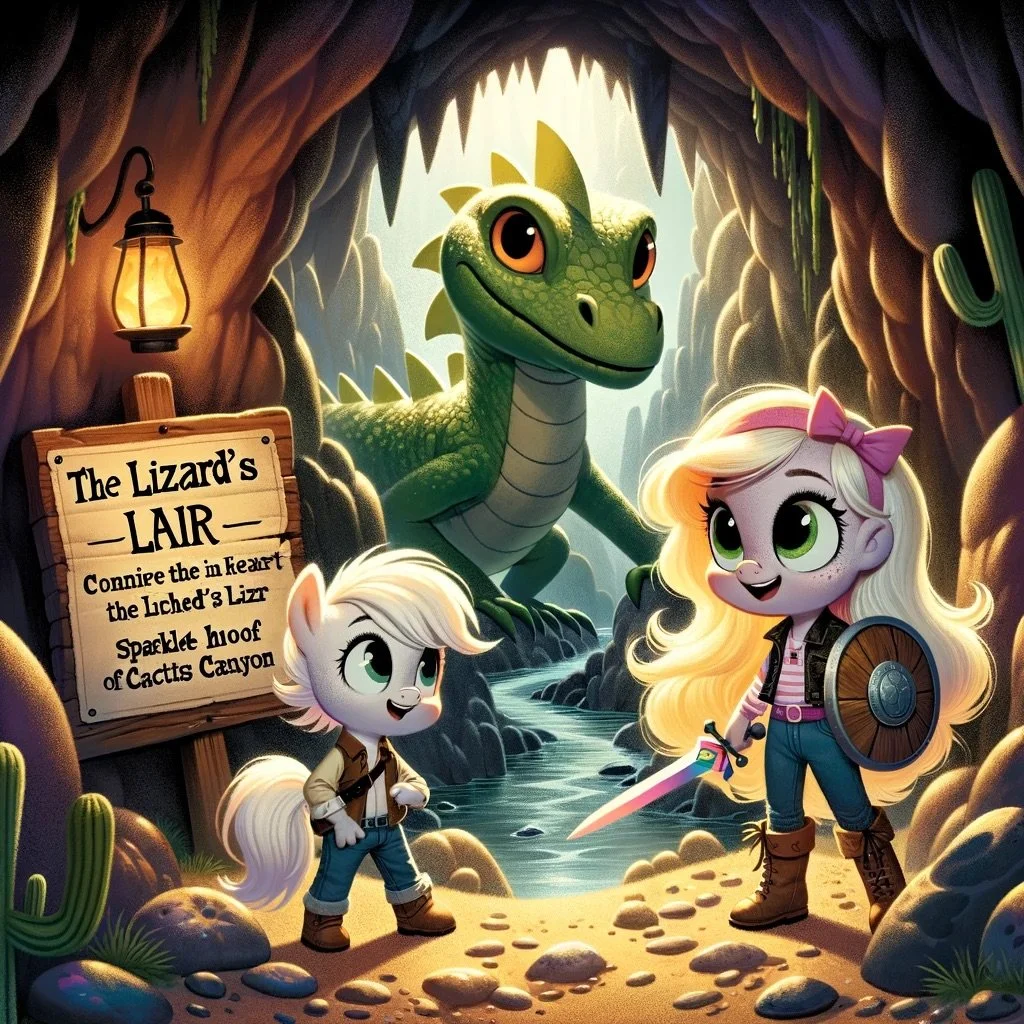 At the heart of Cactus Canyon, they found a cave marked on the map as the Lizard’s Lair. Inside, the treasure glimmered, but so did the eyes of the lizard, guarding its hoard. Connie, with Obi by her side, confronted the lizard, prepared for the challenge.